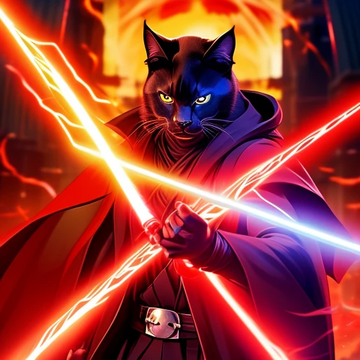 black cat sith lord in action with red l...