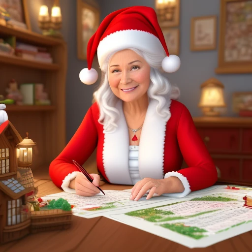 Mrs Claus (age 65) Sorting the Letters Cartoon, ((ultra detailed)) ((detailed material)), ((detailed background)), ((highest resolution)), ((highest quality)), ((64k)), ((sharp focus)), ((3d))