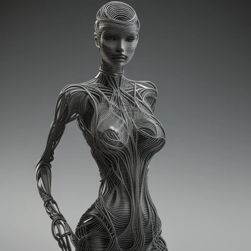 3d printed woman made of bent wire, hdr,...