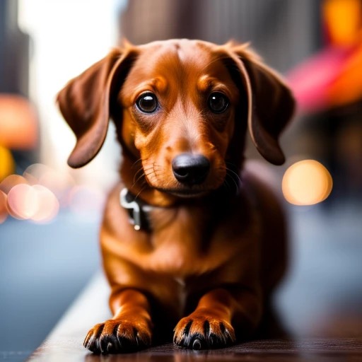 Extremely-detailed photorealistic portrait of Dachshund, ((background - New York city))