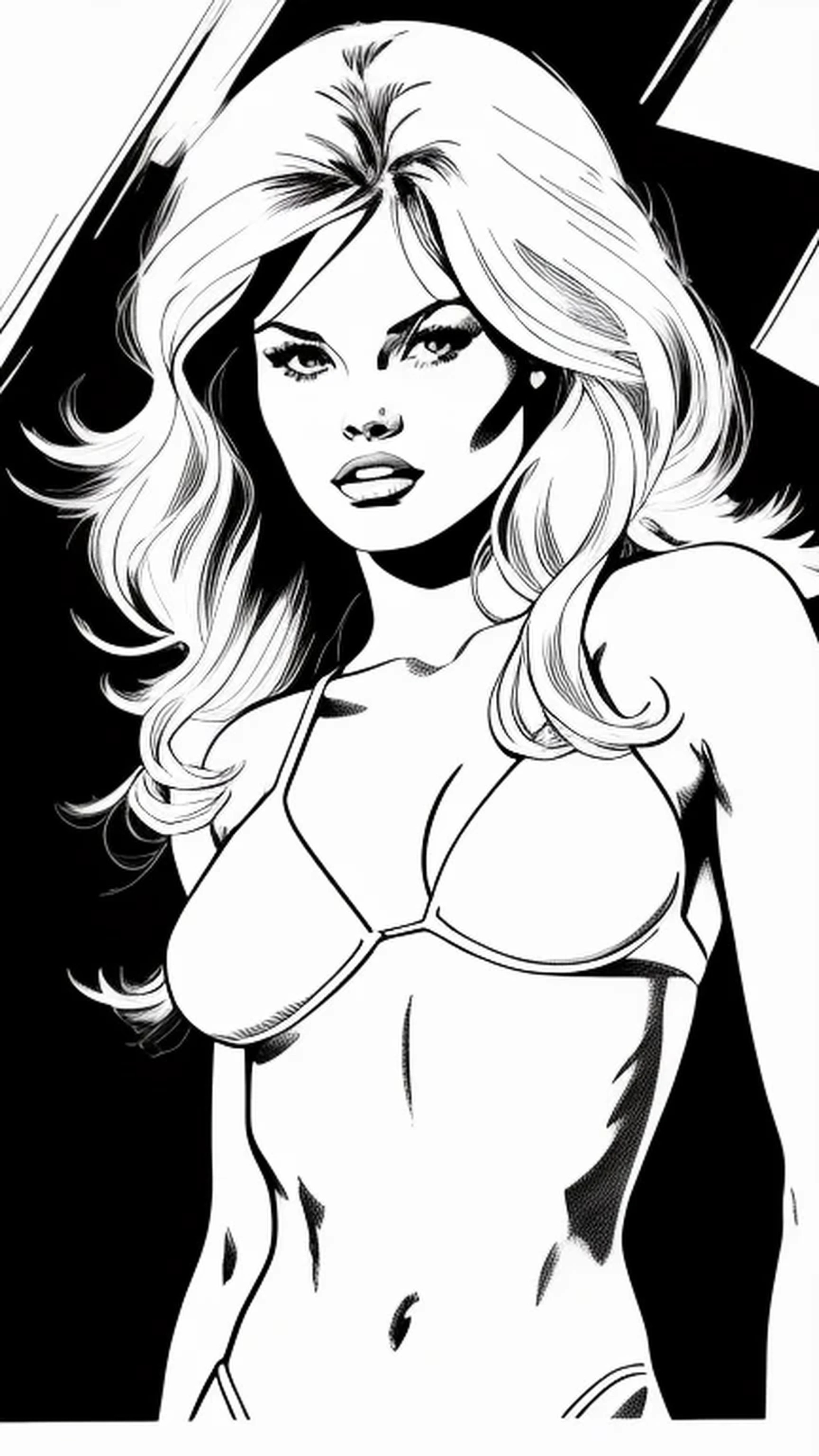 Gorgeous naked Brigitte Bardot, minimalist portrait, rough sketch, black ink, Sean Gordon Murphy style, white background, high contrast, Stunningly beautiful