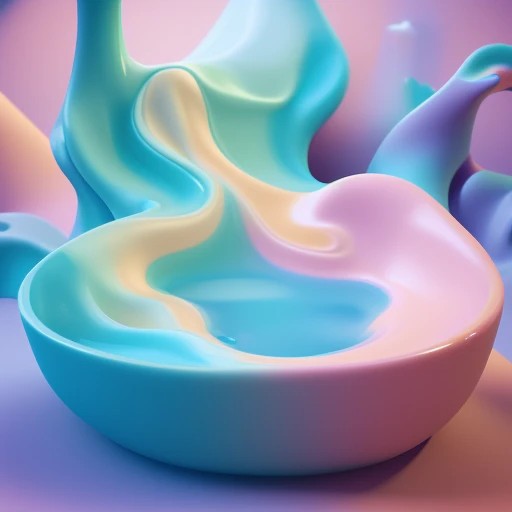 a colorful bath, in the style of dreamlike imagery, rendered in blender, soft pastel tones, biomorphic forms, poured, smooth shapes