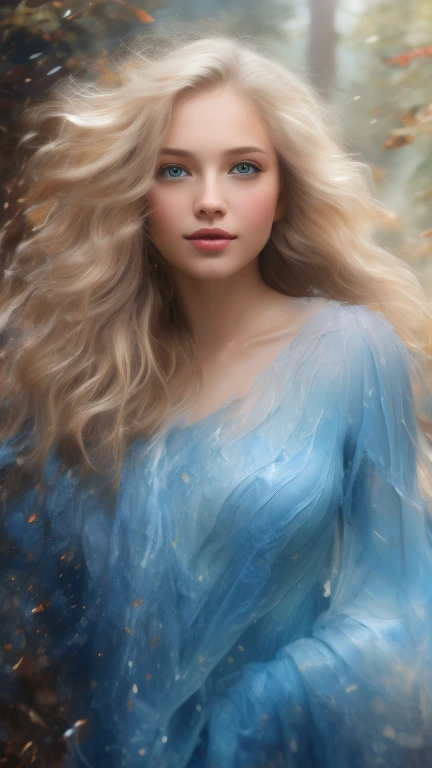 very pretty happy woman with ice blue eyes blonde wavy hair, High resolution, Detailed, Clear