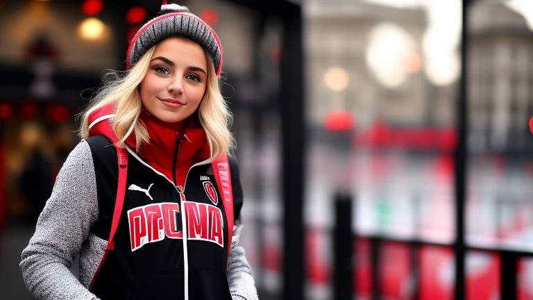 Bellissima ragazza vestita da babbo natale allo stadio dell'A.C. Milan con lo sponsor Puma