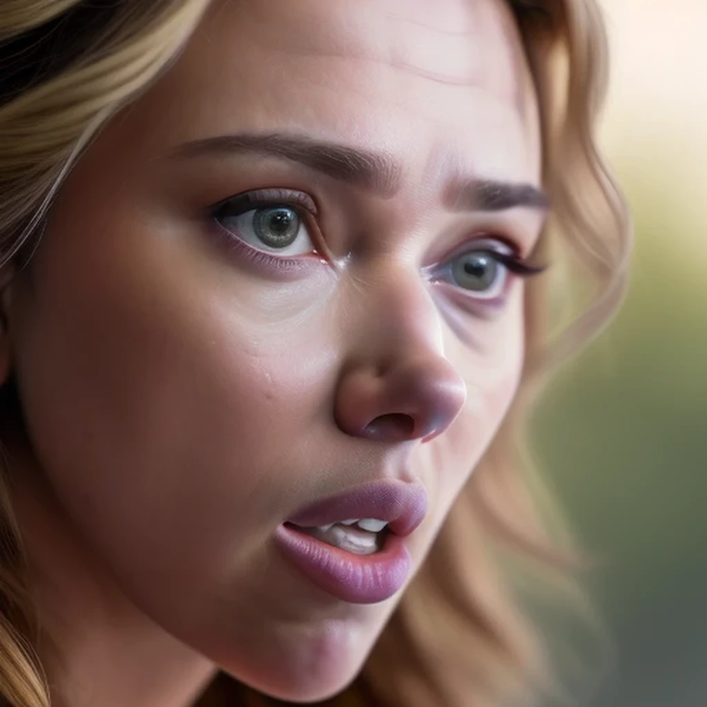 (((8K UHD extremely detailed close-up portrait))) of ((Outraged and surprised Scarlett Johansson))