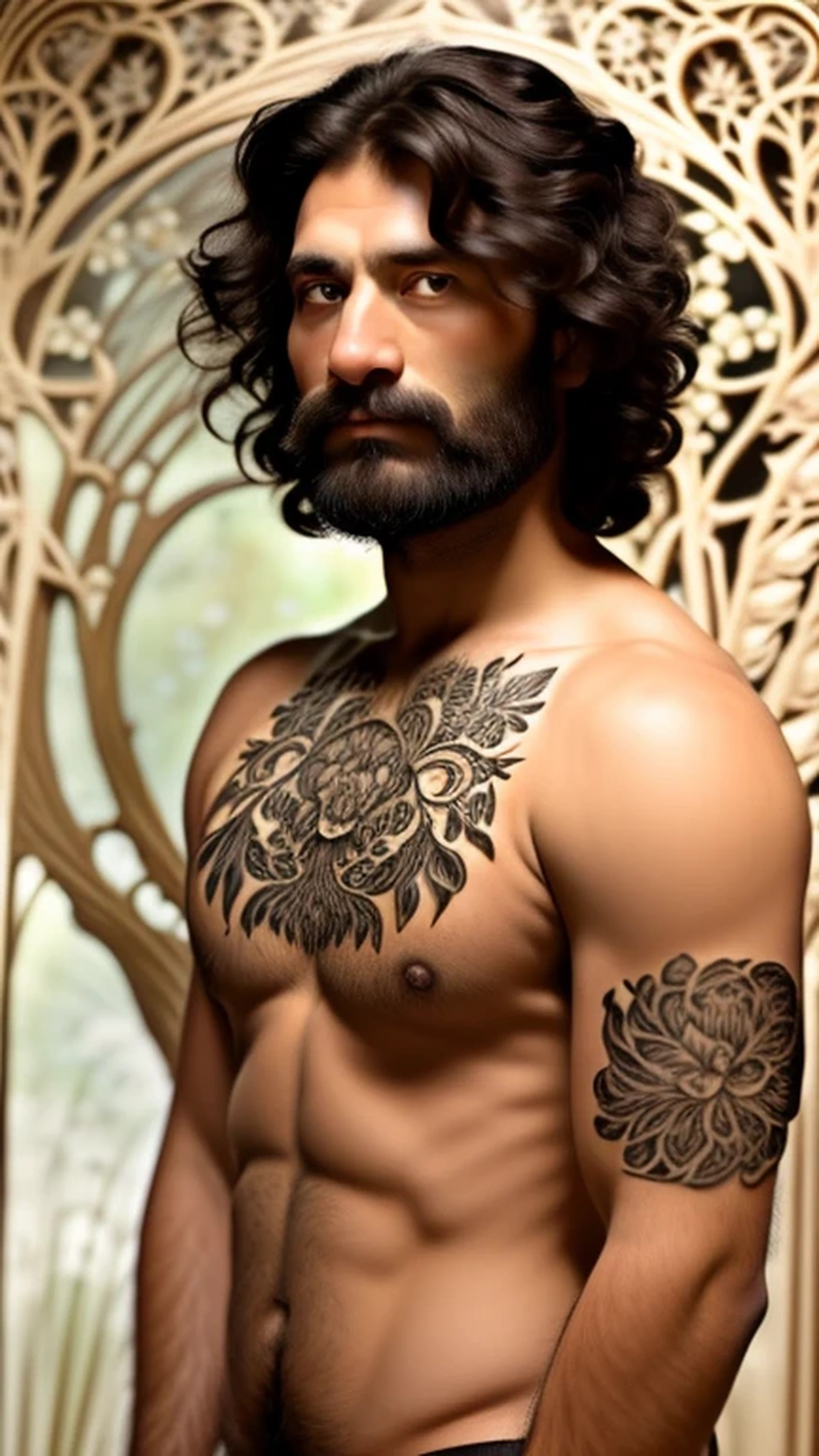 Dark-haired short hair mad muscular hairy man portrait, looking away, black ink, low light, dark background, Frank Miller, high contrast