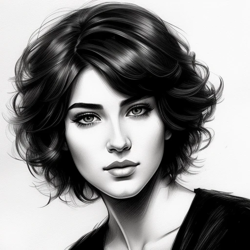 hand sketched, girl portrait short hair,...