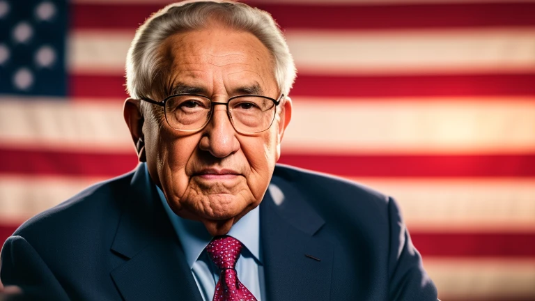 Henry Kissinger portrait with american flag as background