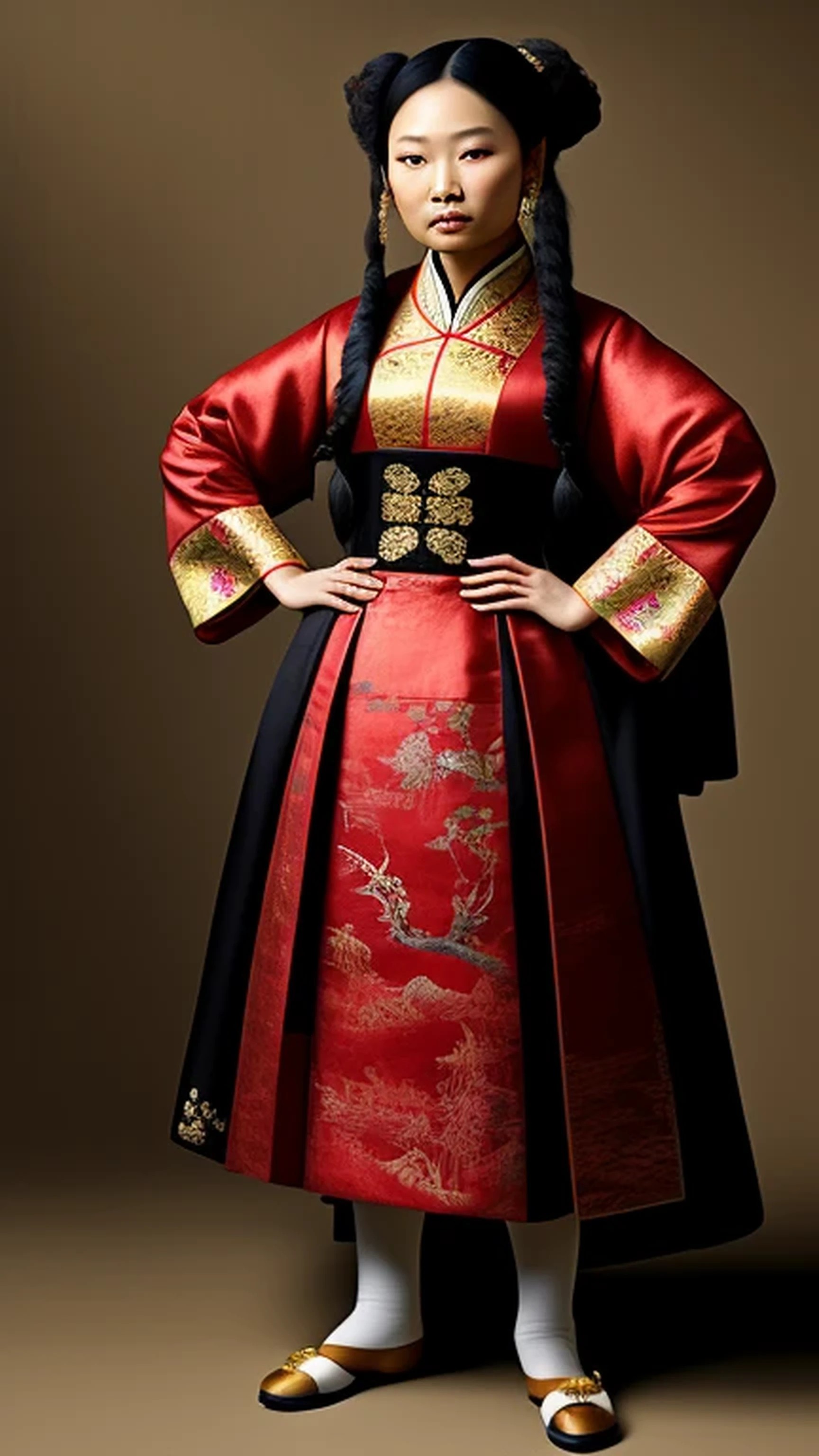 Chinese Asian girl, [[Lucy Liu]], traditional dress, standing. Johan Vermeer style. [[sharp rendering]]