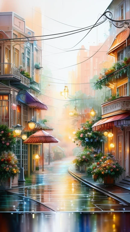 4d sketch art Modern charming beauty with bouquet on vintage city street, hair color vintage peach, eye color vintage green with smoky eyeliner, delicate powdery face skin with blush, chiffon translucent gold couture potal pattern, cream shoes, luxurious figure, stunning half-turn full-size top view, opalescence vintage green, vintage peach, cream, gold potal, dynamic composition, wet watercolor , Light Strokes, ((3d sketch art in the style of Marcel Marlier)).