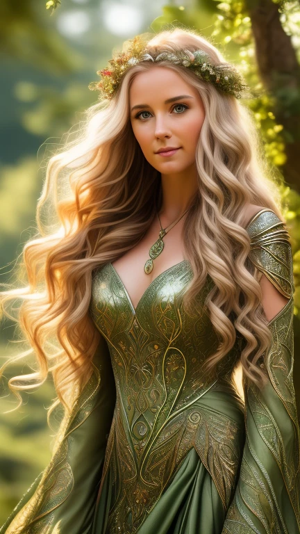 Celtic Tree Zodiac - December, Celtic woman full body pose in front of Rowan trees background, ((protector face)) ((detailed face)), ((detailed body)), ((detailed Hair)), ((detailed background)), highest resolution, highest quality, 64k, sharp focus,
