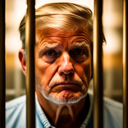 sad old donny trump in jail (behind bars:1.2) where he belongs