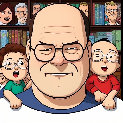 balding man in his 50s, no facial hair, fair complexion and hair, wearing rayban glasses with a stocky build as a family guy character