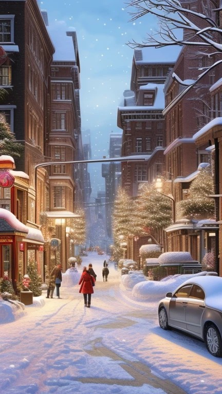 Christmas Men and Women and Boys and Girls and Dogs and Cats in Snowy Street Scene ((action poses)) ((photorealistic)) ((live action)) ((ultra detailed)) ((detailed faces)) ((detailed Body)) ((detailed background)), ((highest resolution)), ((highest quality)), ((64k)), ((sharp focus)), ((3d))