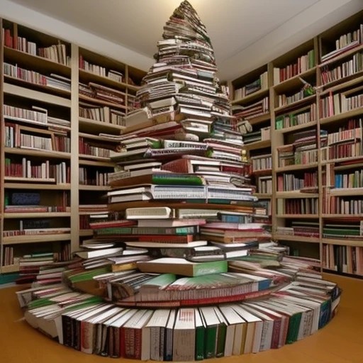 christmas tree made with many books