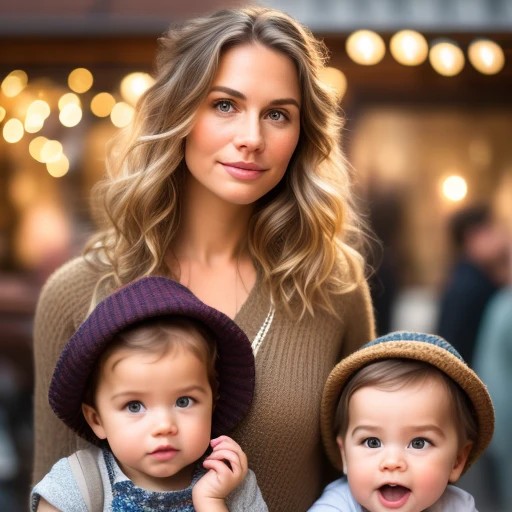 front view of a hipster mom and her toddlers in 3d, ((realistic)), ((detailed background)), ((detailed bodies)), ((detailed faces)), ((highest resolution)), ((highest quality)),